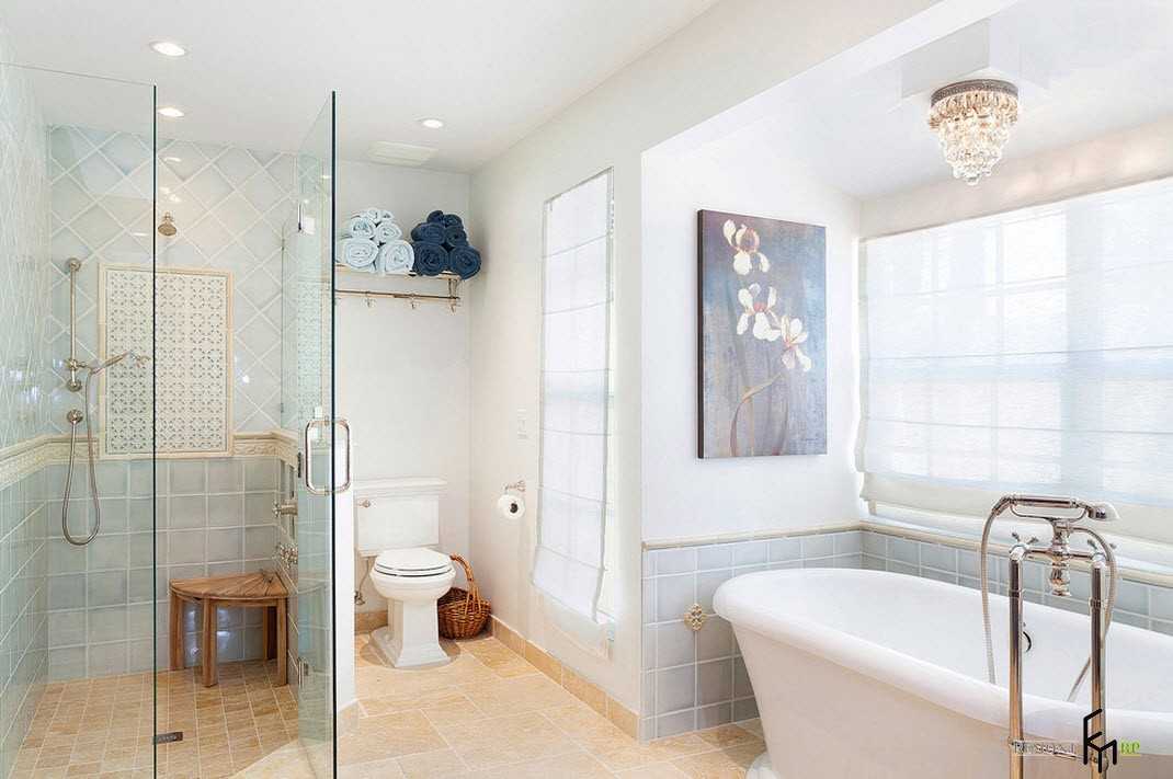 Как уже упоминалось, главным действующим лицом комнаты станет ванна. Строгих ограничений в ее оформлении нет, но традиционная белая емкость на резных ножках будет смотреться наиболее гармонично даже в центре планировки.