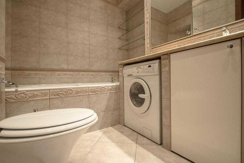 Удобная планировка. Классический стиль предполагает равномерное использование площади помещения, а потому санузел не выглядит слишком пустым или, наоборот, чрезмерно заполненным мебелью и сантехникой.