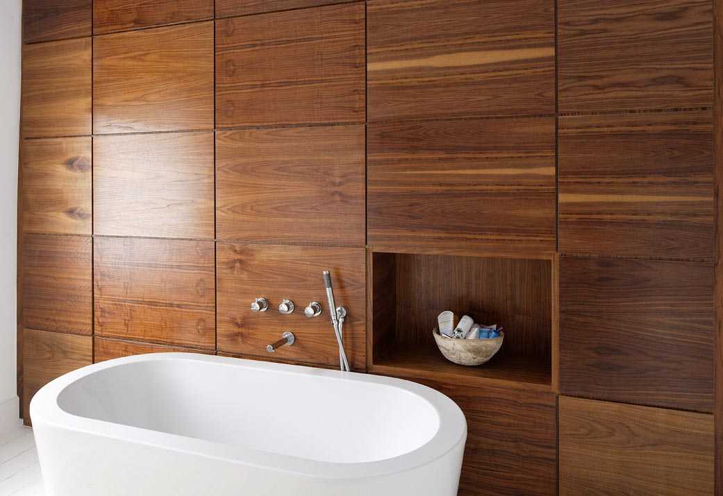 Плитка для ванны под дерево является износостойким, долговечным, влагостойким материалом. Производственные технологии позволяют воспроизводить оттенки разных пород древесины (ясень, дуб, вишня, клен, береза). Облицовка отличается размерами, составом, фактурами, оптимальна для оформления помещений в стиле кантри, прованс, винтаж, минимализм.