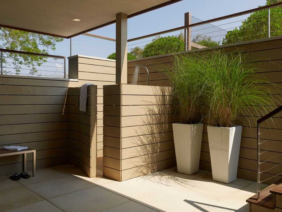 Дизайн такой душевой позволит не только освежиться в жаркий летний день, но и доставит эстетическое удовольствие