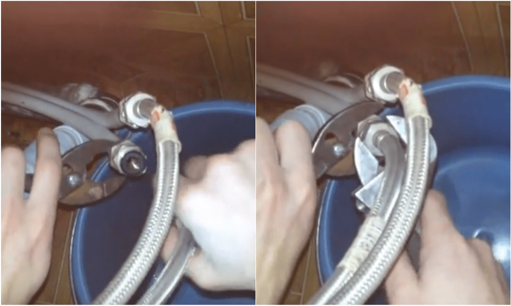 Отсоединение гибкого шланга от водопроводной трубы