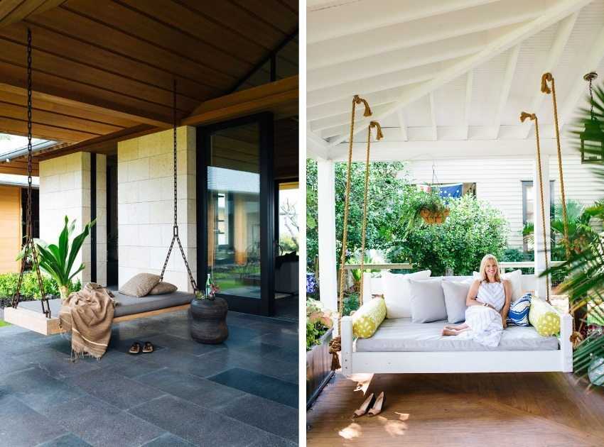 беседку с подвесными креслами или диванами;