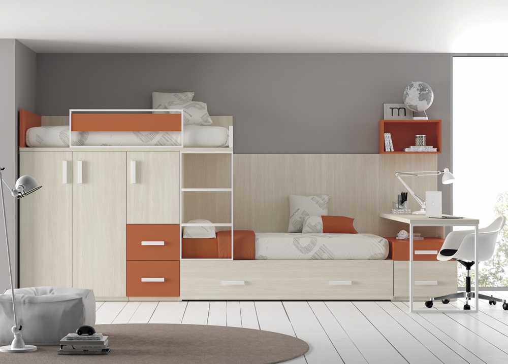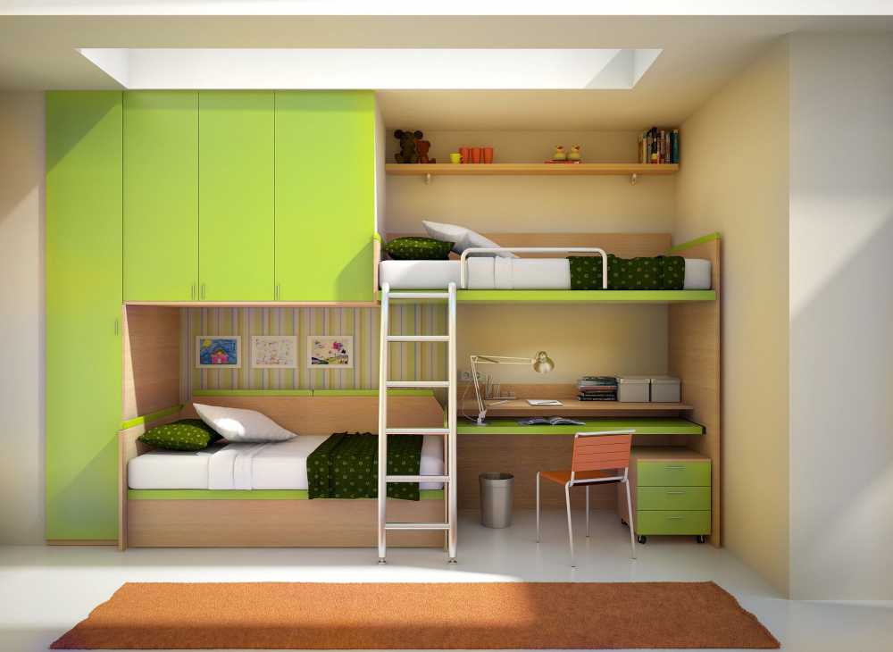 Существует огромное множество двухъярусных кроватей с компьютерными столами, а также всевозможными полками и шкафчиками. Они помогают организовать своего рода рабочий кабинет в очень ограниченном пространстве и заодно упорядочить вещи в комнате.