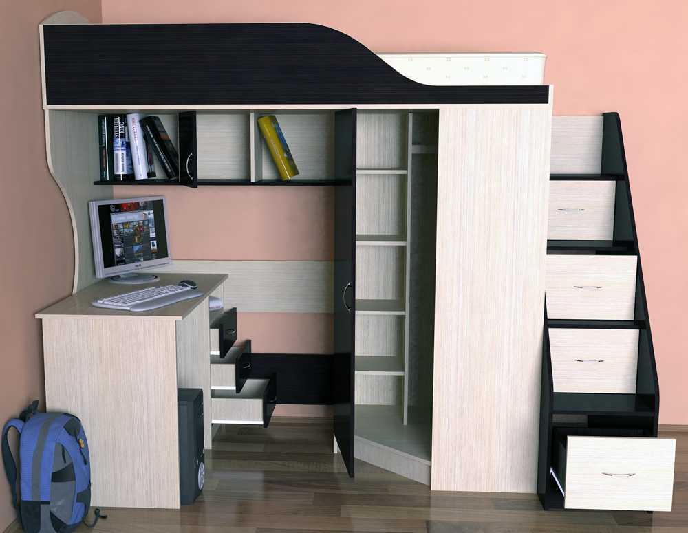 Двухуровневая мебель с письменным столом имеет ряд достоинств перед классическими моделями.