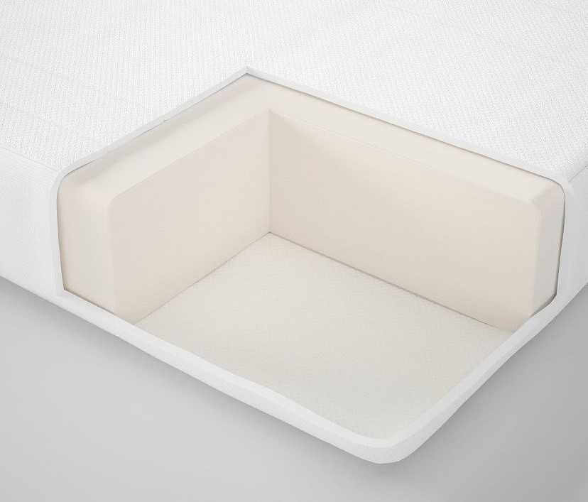 Матрас высотой 9 см с анатомическим наполнителем из высокоэластичного пенополиуретана. Стеганый чехол из смесовой ткани. Ткань верха — 64% полиэстер / 36% хлопок. Ткань боковин — 64% хлопок / 36% полиэстер. Застежки-липучки надежно скрепляют части матраса между собой.