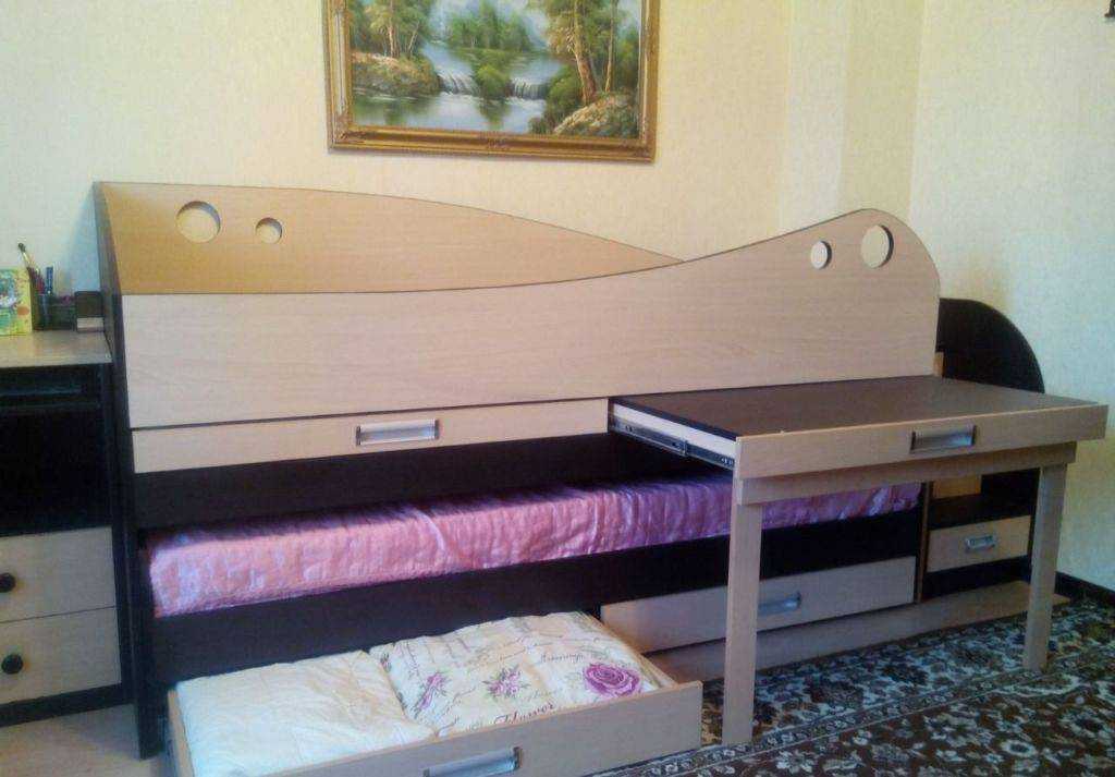 Диван-трансформер — это конструкция, которая раскладывается в двухъярусную. Является отличным решения для комнат разного назначения.