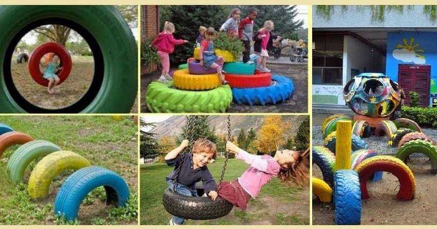 Детские площадки из ПОКРЫШЕК (12 фото)