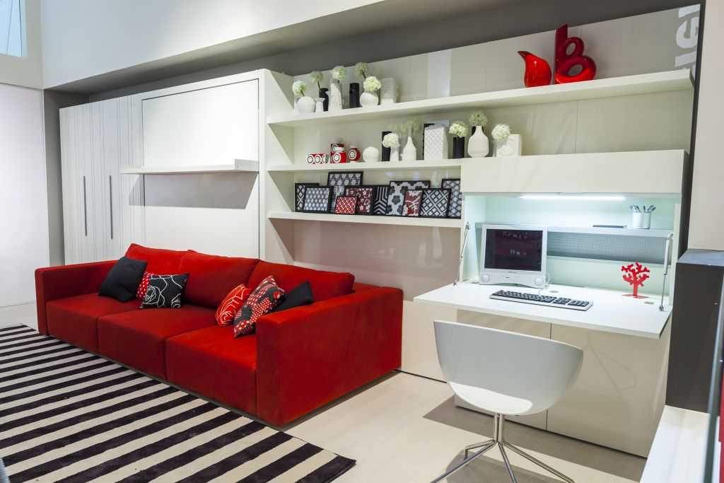 Абсолютно каждая трансформирующаяся мебель подходит для малогабаритных помещений. По предназначению она бывает: для сна, отдыха, приема пищи, хранения вещей, работы. Встречаются модели мебели, объединяющие не 2 или 3, а значительно больше предметов. Например, кровать + компактный диван + рабочий стол + шкаф + кресло. Единственные преимущества таких многозадачных моделей — эргономичность и оригинальность. Чем больше деталей, тем меньше срок эксплуатации мебели.