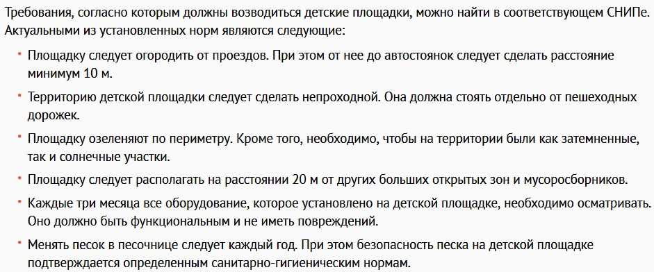 - Игровая зона не должна граничить с постройками на участке, такими как беседка, баня или забор.
