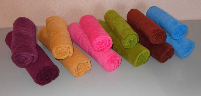 - Полотенца из микрофибры универсальны, выпускаются в самых различных размерах и цветах. Есть маленькие, например, 40х40 см предназначаются для рук. Большие размеры – 170х90 см используют для бань. Обычно их комплектуют защитными чехлами с застежкой.
