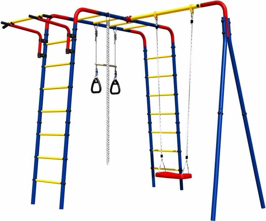 Это период высокой физической активности ребенка, поэтому, помимо перечисленных снарядов, спортивные площадки для ребят этой возрастной группы могут включать в себя и гимнастические кольца, веревочную лестницу, батут и многое другое.