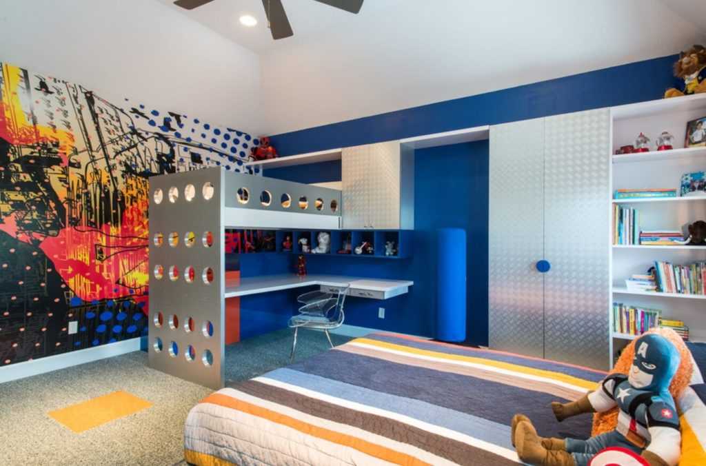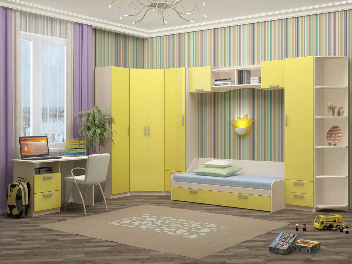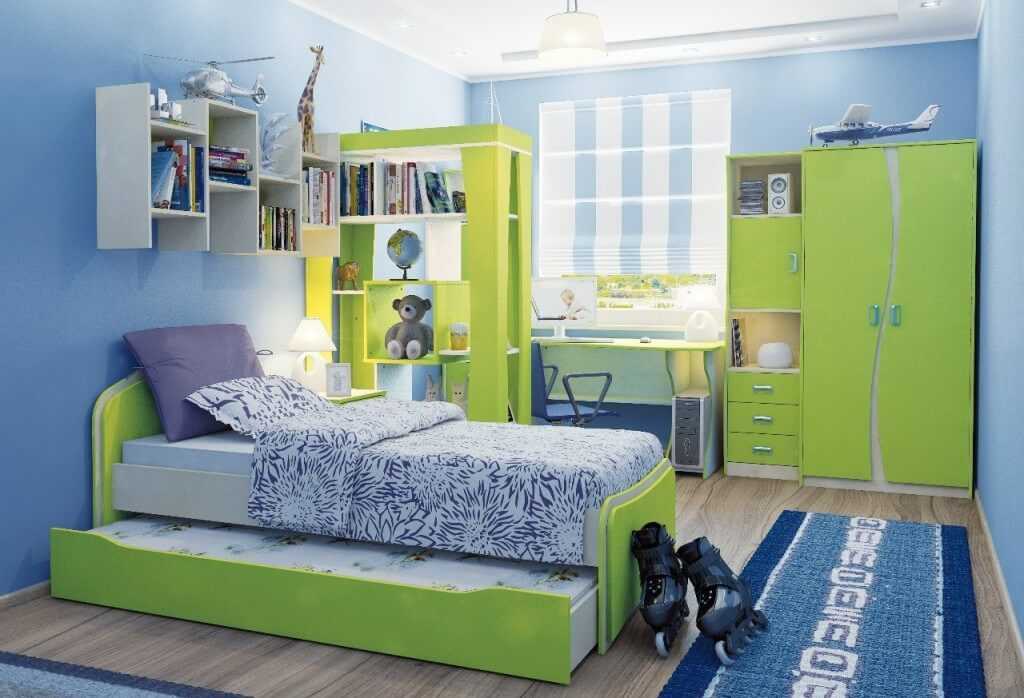 Ну и, конечно, не стоит забывать о цветовой гамме, комната не должна слишком пестрить. Поэтому мебель стоит подобрать из одной коллекции. Тем более что у ребенка в комнате и без того будет много ярких вещей. Если же это комната подростка, яркими акцентами здесь могут стать диван, декоративные подушки, шторы, картины – стеллаж пусть будет более строгим.