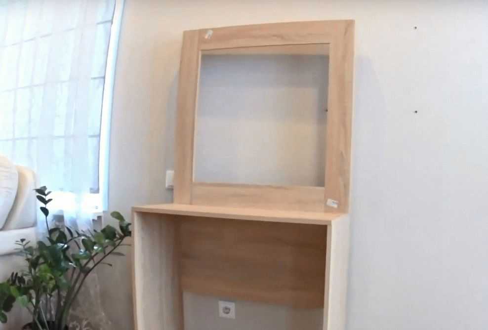Последний шаг является рекомендуемым, а не обязательным. Прикрепленные к стенам косметические столики признаны более устойчивыми даже при наличии 4 ножек. При выборе места установки заранее продумывается способ запитки подсветки и проверяется удобство размещения стула или пуфика.