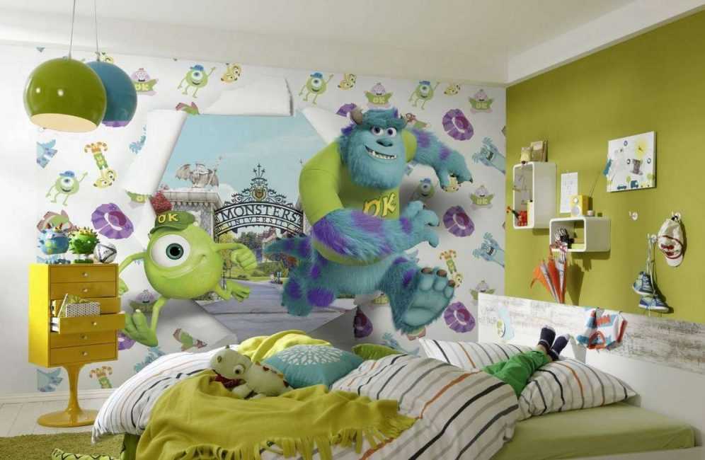 Это настолько яркий и привлекающий к себе внимание элемент интерьера, что к его выбору стоит подходить особенно осторожно, и чем младше ребенок, тем более внимательным стоит быть. Лучше вообще не использовать столь активные изображения для детей дошкольного возраста
