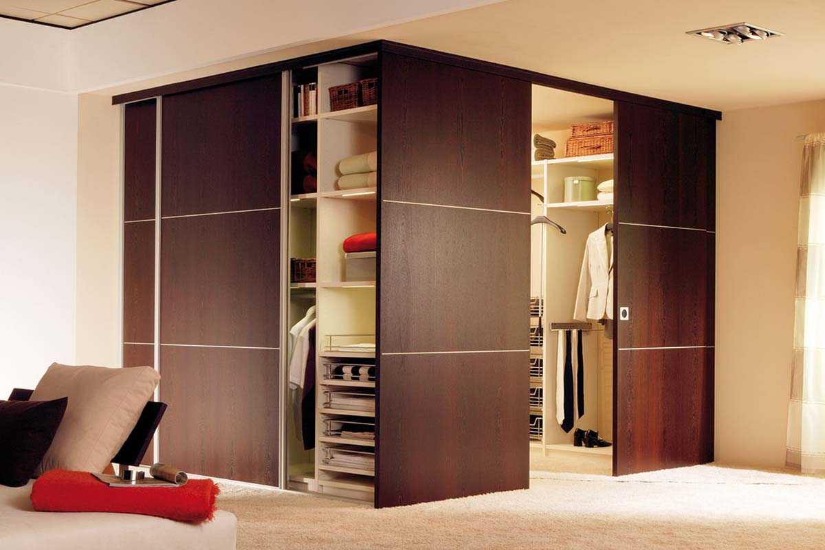 Перечислим самые популярные дизайны гардеробной в спальной:
