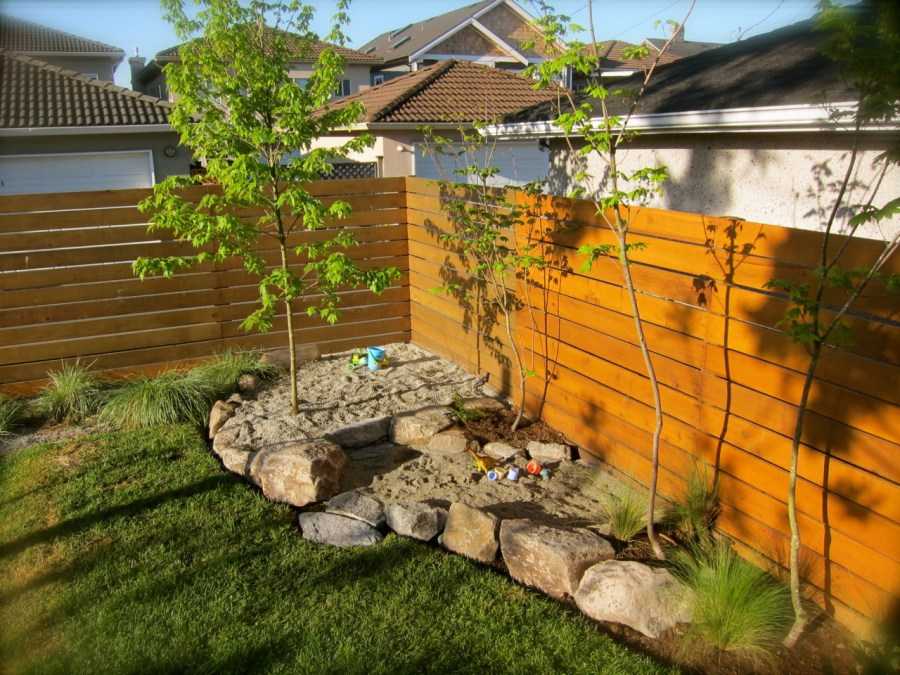 Первым делом определитесь с расположением песочницы. Выбранный участок должен быть удобным для игр и безопасным. Это открытые и ровные пространства, где родители всегда смогут контролировать чадо. При этом незнакомцам с улицы он по понятным причинам должен быть не виден. ![]()
