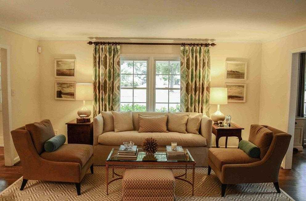 Небольшой участок оставьте свободным. Для интерьера такой гостиной идеально подойдет ковер размером 1,5х2,1 или 1,8х2,7 метров.