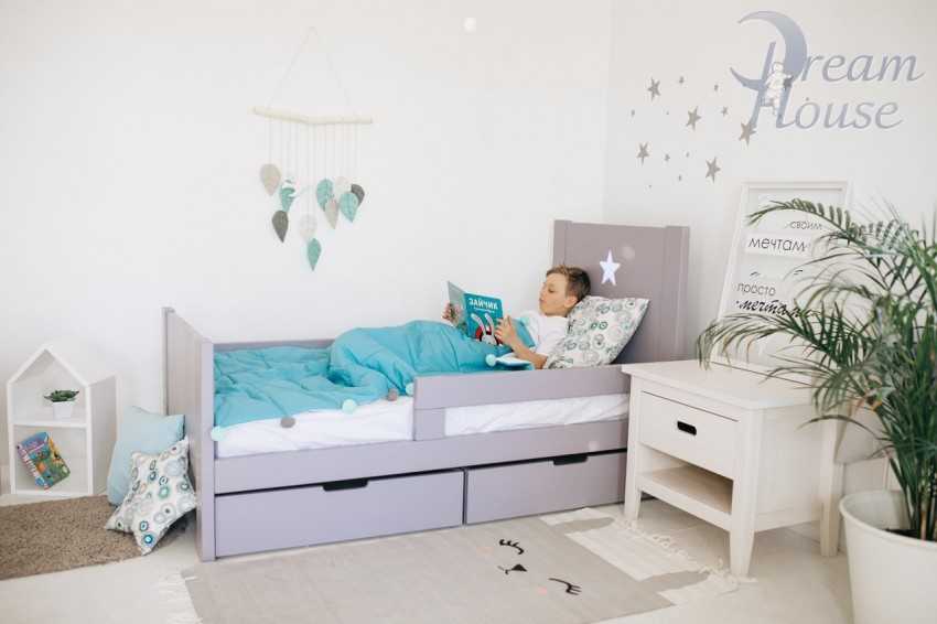 Немаловажный фактор при подборе детской кровати от 3 лет с бортиками — это возможность вентиляции. Боковые стенки должны быть изготовлены из высококачественных материалов, не имеющих синтетических запахов и примесей. Желательно приобретать модели с бортиками из реек. Между каждой из них должно быть расстояние 4–6 см, иначе воздух будет плохо поступать к спящему. Однако, если зазор больше 6 см, нога или рука малыша может случайно попасть в отверстие и застрять. Ориентируясь на этот критерий, можно выбрать спальное место с тканевыми или сетчатыми бортиками на твердой основе.