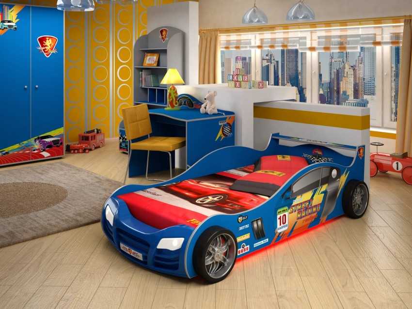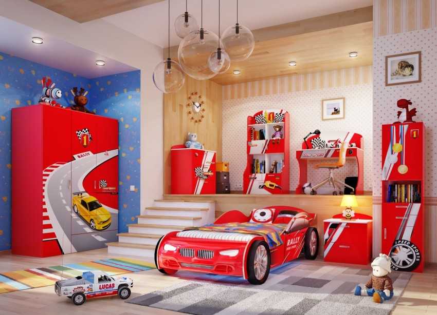 - Эстетика. Яркое авто гармонично впишется в пестрый интерьер детской комнаты.