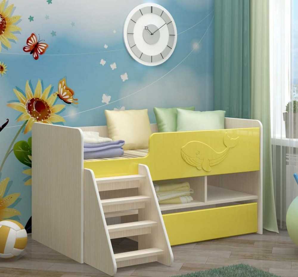 Двухъярусные модели всегда имеют оградительные элементы для обеспечения безопасного сна. Спальные места могут укомплектовываться полками для игрушек или детских книжек.
