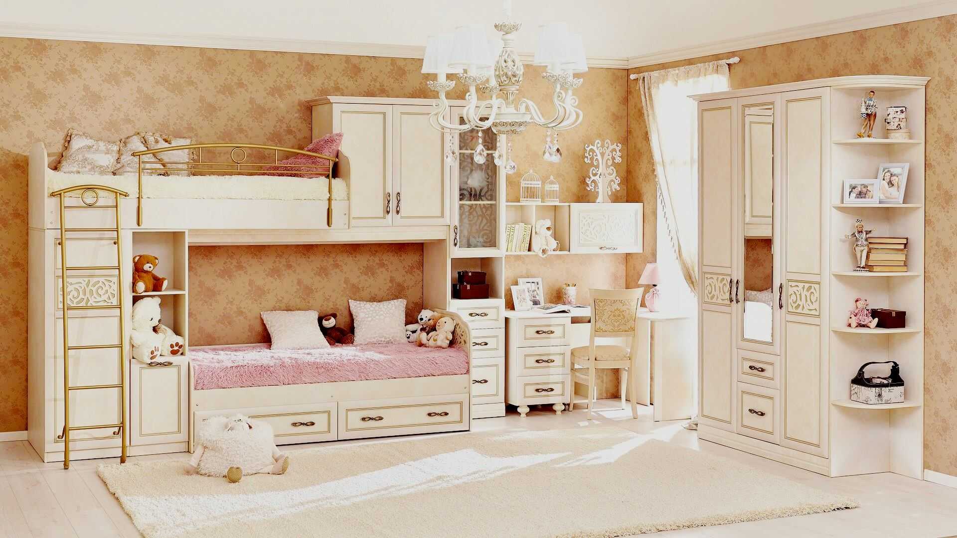 Классическая мебель в детской не должна быть перенасыщена нарядным декором, таким как позолота, лакировка, многоуровневая резьба. Они перегрузят интерьер. Мебель в детскую комнату для двоих детей классического оформления можно наблюдать в последующих комбинациях: стул и стол, платяной шкаф, комод на ножках, высокая тумбочка. Используются мягкие диваны-кушетки или простые кровати на ножках.
