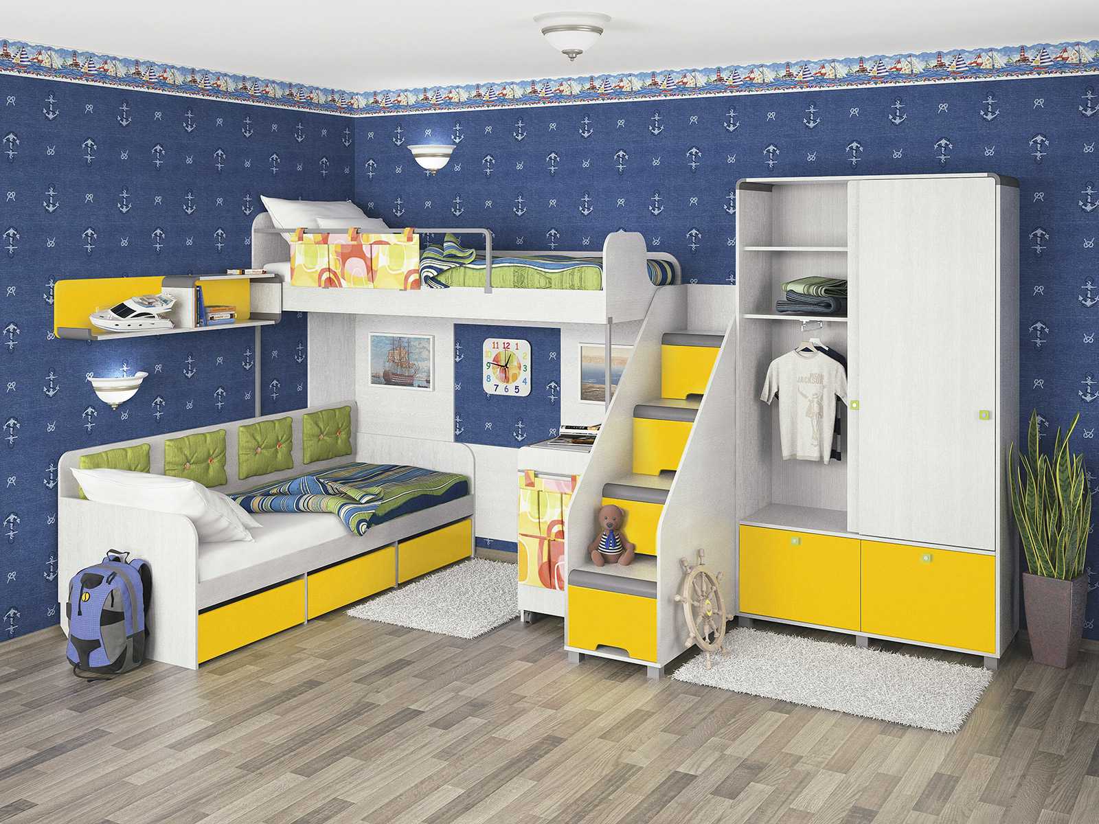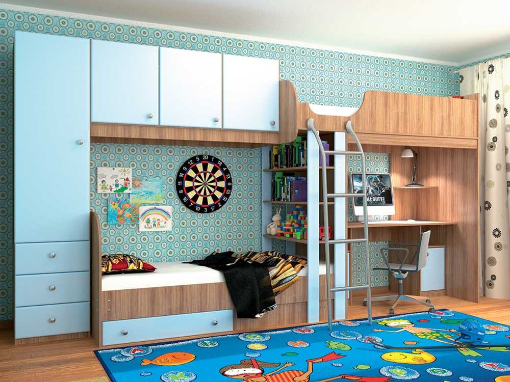 - эргономичной – двухъярусные кровати, внизу которых прячется письменный стол или шкаф, гарантированно понравятся любому малышу, так же, как и модульные конструкции, будто созданные для активных игр.