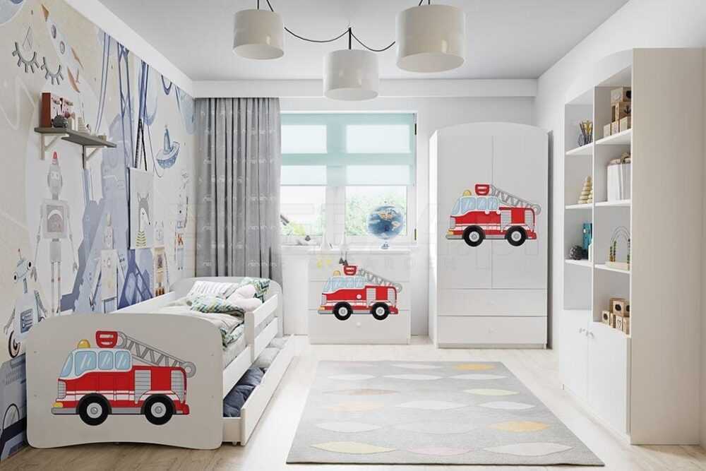 - Набор детской мебели от 3 до 7 лет. В дошкольном возрасте у детей формируется представление своего пространства. Родителям стоит позаботиться, чтобы у ребенка было личное спальное место размером 140 на 70 см, индивидуальная зона для занятий. Если в семье 2 ребенка, комплект стол и стул (50 и 25 см) у каждого должен быть свой. В комнату дошкольника можно добавить шкаф (для малогабаритной детской – комод). Его высота, как правило, 150 см, а ширина от 40 до 80 см.