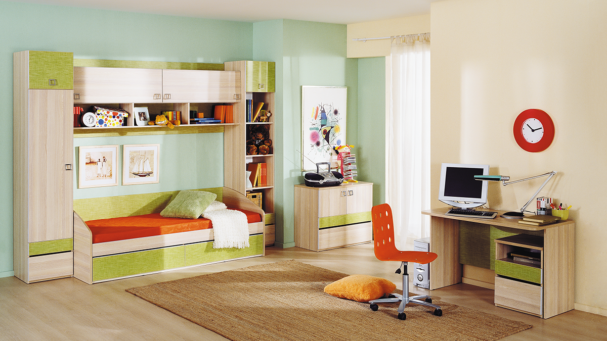 Цвет. Все детки любят яркие и красочные оттенки, но желательно выбрать основные компоненты мебели в пастельных тонах. От них не устают глаза, ребенок не перевозбуждается, спит спокойно, не капризничает. Идеальный вариант – голубые, бежевые или зеленые тона. Некоторые элементы могут быть яркими.
