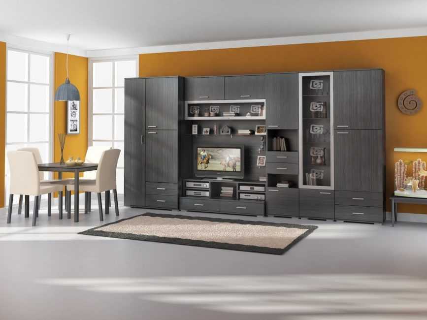 - Эргономичность. Такие стенки удобны в эксплуатации и уходе. Их легко собирать, разбирать, вешать на стену (если имеются навесные конструкции);