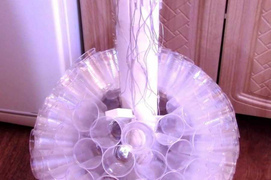 Ее можно плотно закрепить в сердцевине цветка, сделанного из прозрачной крышки упаковки для торта или 5-литровой пластиковой бутылки, а вокруг нее, на ветках деревьев или кустов, развесить фигурки эльфов, которые будут кружить и покачиваться в воздухе.