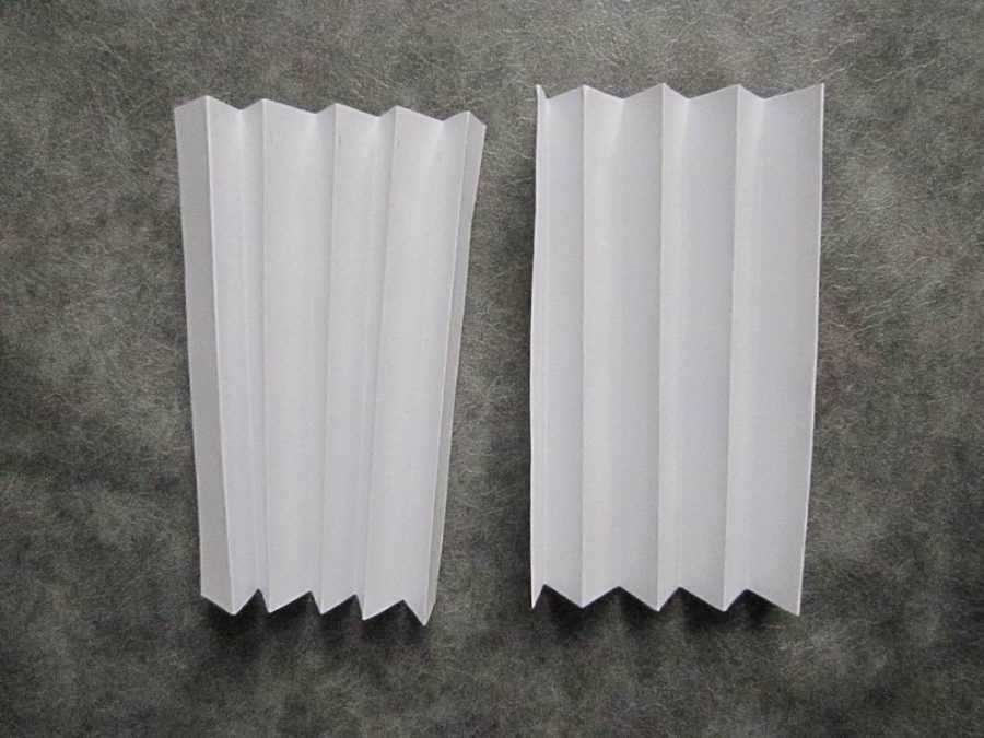 Прорезанные части фигур надо отогнуть вверх и к центру так, чтобы они стали объемными.