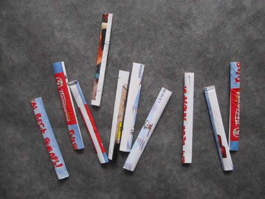 - Газету порвать на небольшие кусочки, со стороной 2-3 см. Резать ножницами не рекомендуется, так как тогда будут плохо приклеиваться края.