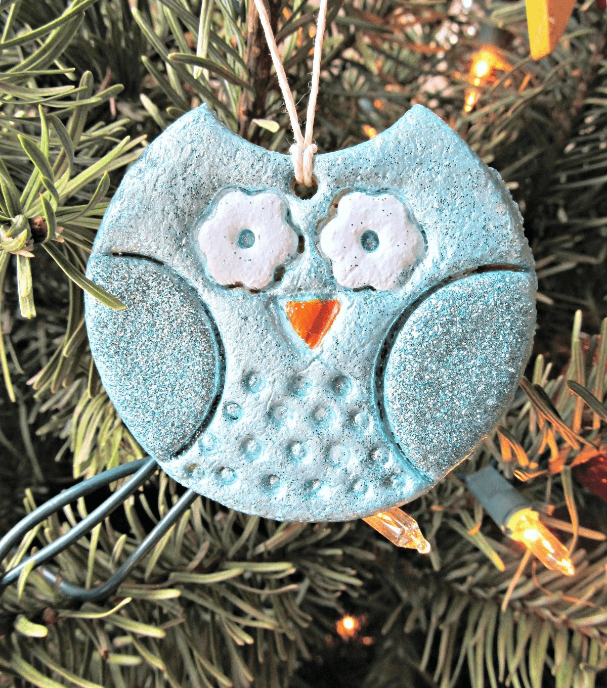 Волосы эльфов сделаны из тонкой упаковочной ленты, завитой с помощью ножниц. Фигурки подвешиваются на ветки с помощью прочной нитки или лески, одним концом закрепленным на поясе куколок.