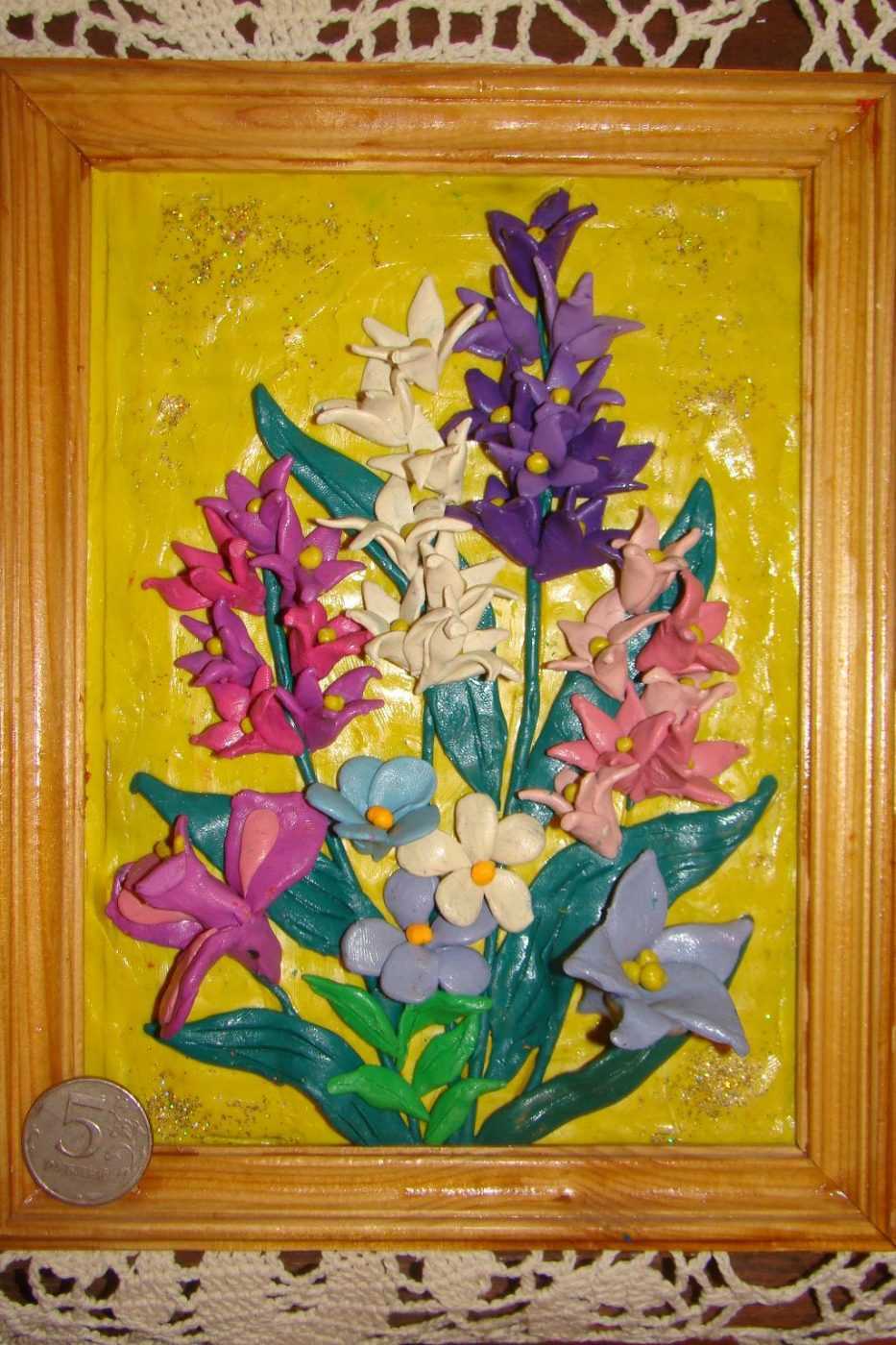 Работу осталось поместить в рамку, с обратной стороны зафиксировав на клей или двусторонний скотч.
