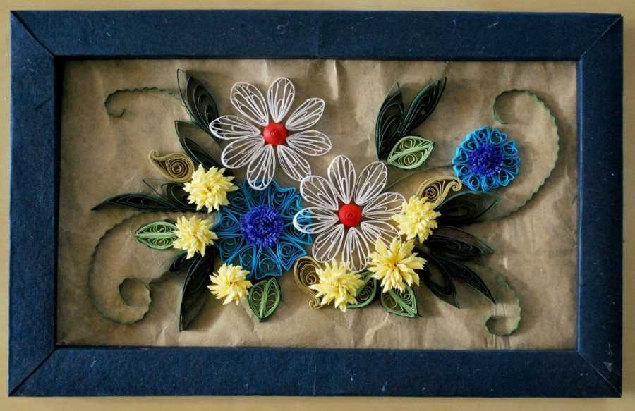 Для оформления такого панно можно использовать как готовую, так и самодельную рамку. В качестве материала основы используется гофрированный картон.