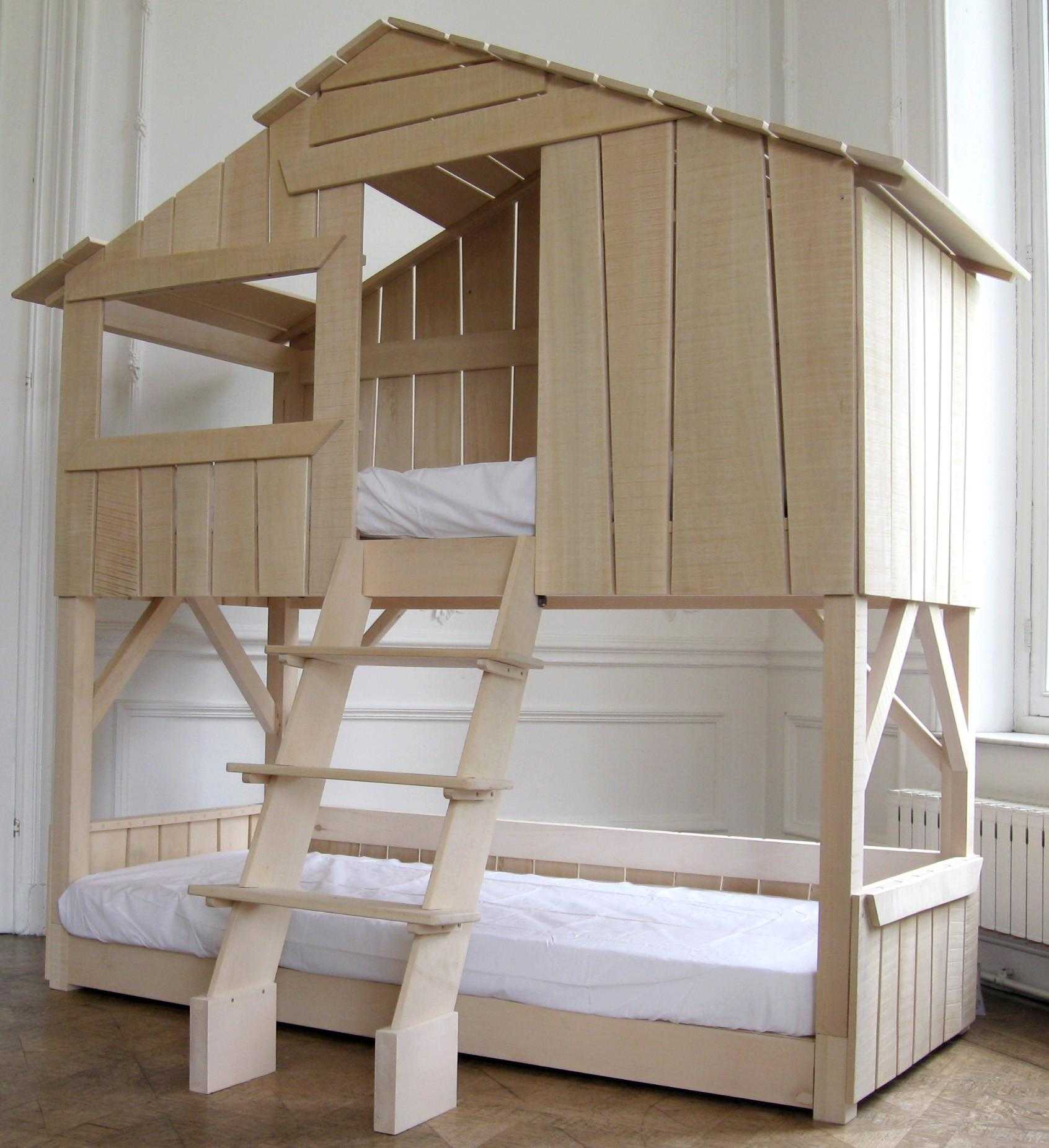 Для девочек предлагаются изделия в форме сказочных домиков, кареты. Мальчики предпочитают модели в виде автобуса, машины, пиратского корабля. Основная конструкция кровати изготавливается традиционно, спальные места располагаются друг под другом.