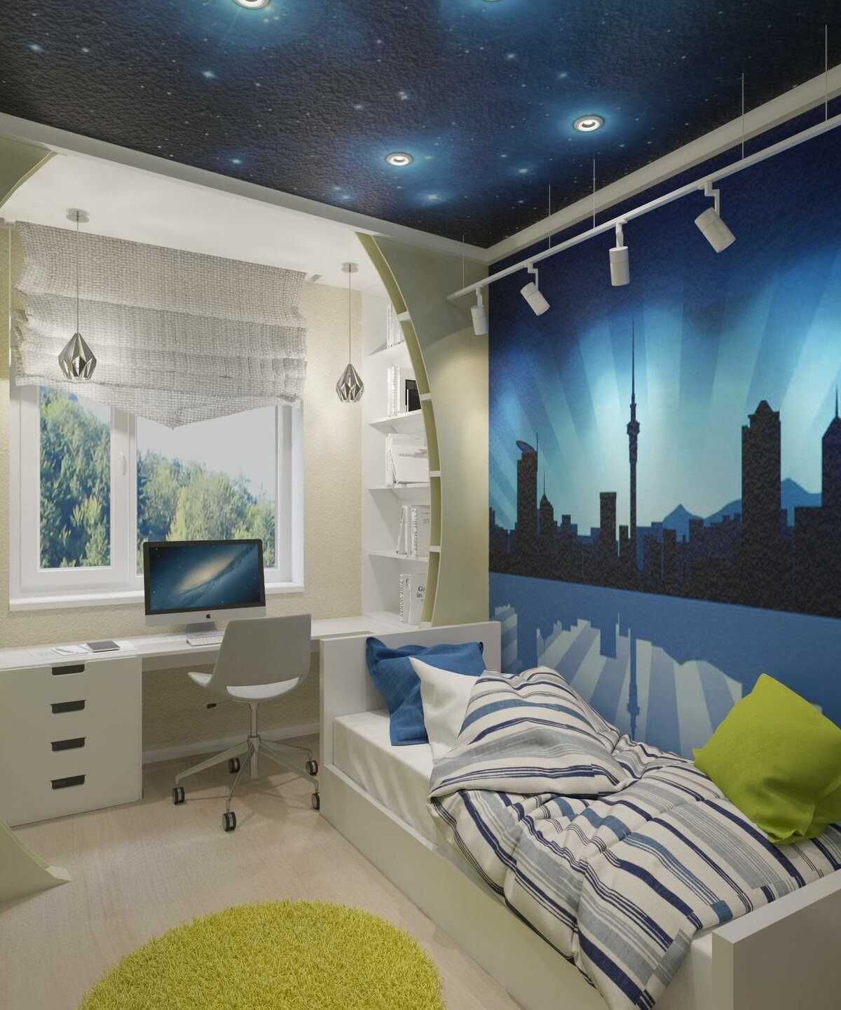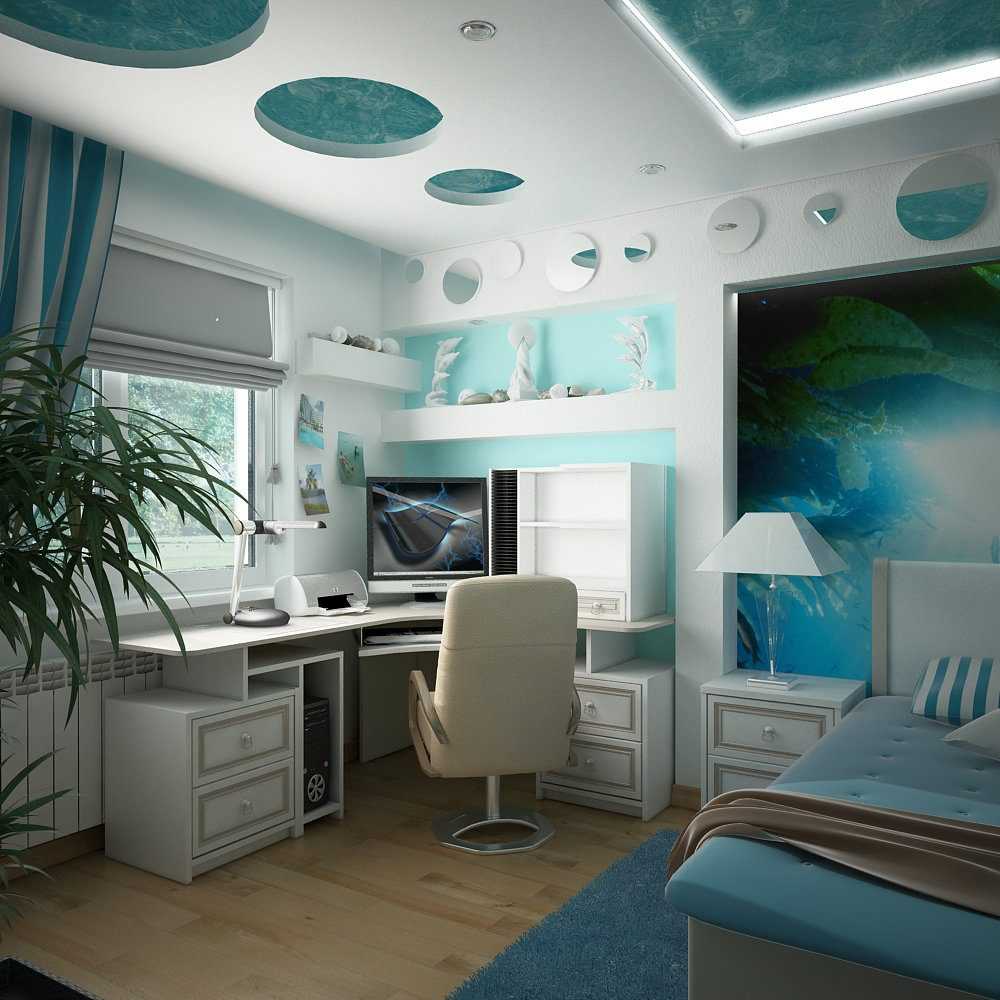Для подростка подойдет вариант потолка с абстрактным объемным изображением. Желательно предусмотреть вариант дистанционного освещения с различными режимами и световыми эффектами.