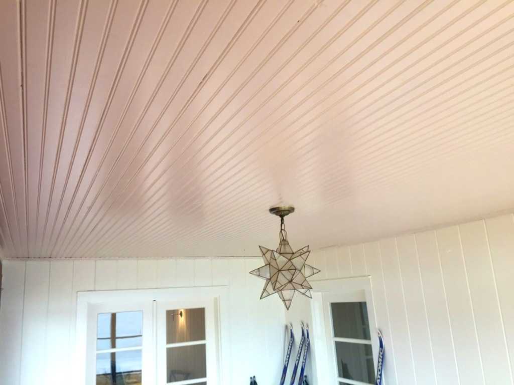 Самый простой вариант – это покрасить поверхность. Подобное решение сегодня встречается относительно редко, если говорить о таком потолке в чистом виде, без подвесных конструкций. Работу можно выполнить самостоятельно – деньги на это найдутся у любого человека. Ремонт окажется сравнительно долговечным и не особо пострадает от детских шалостей, но вот выглядит такое решение крайне примитивно.