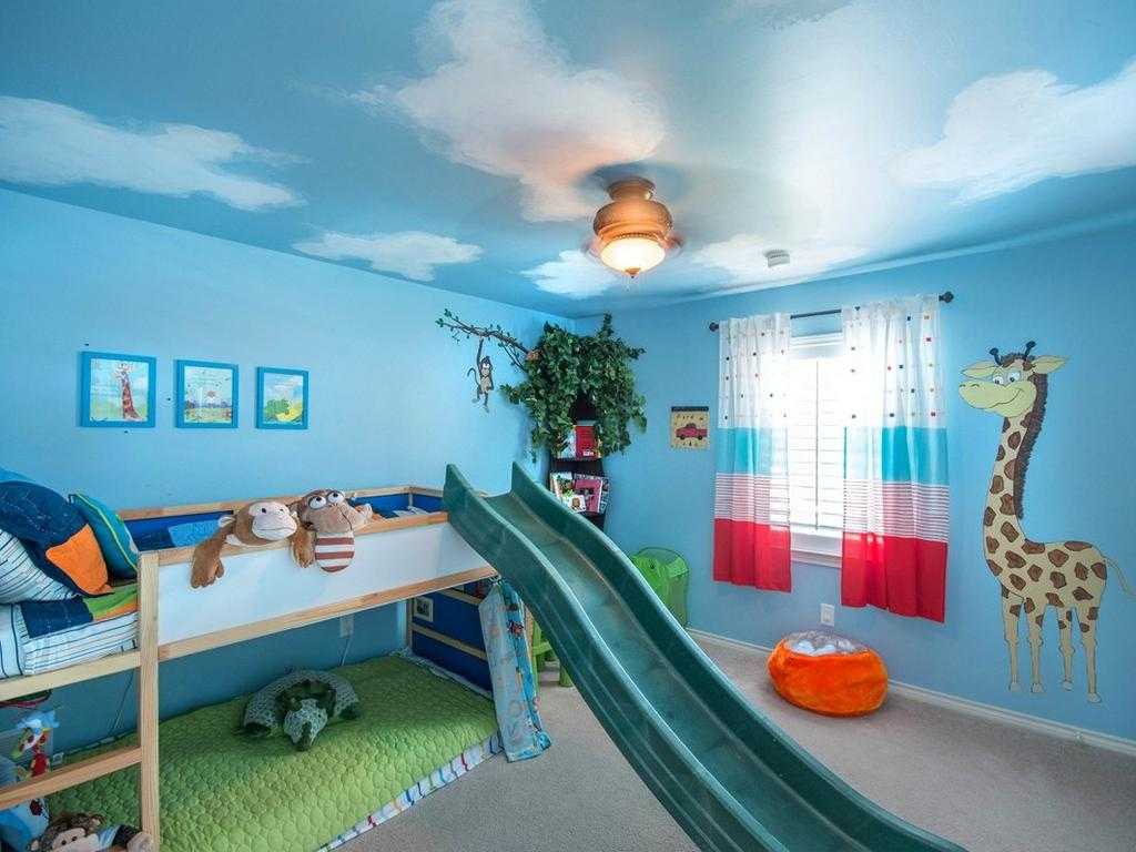 Стоит попытаться добавить красок и рисунков, оклеив, например, потолок обоями. В результате монтаж окажется сложнее, а результат, скорее всего, будет менее долговечным. Но такая затея может в большей степени соответствовать интересам малыша.
