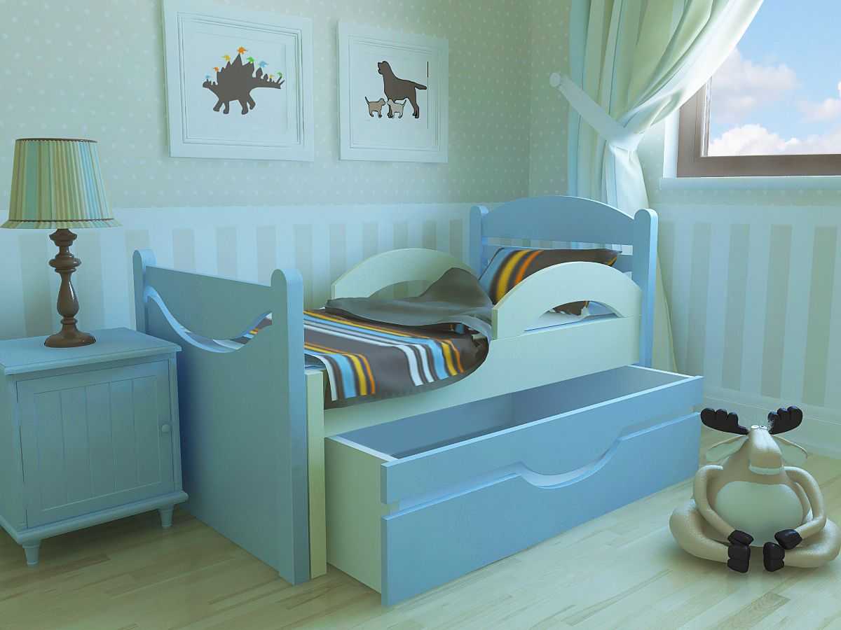 - Наличие ящика для белья. Такой аксессуар важен тогда, когда располагаться кроватка будет в небольшой комнате. В этом случае нет необходимости использовать дополнительный ящик для белья. Если выбор пал на кровать именно со шкафом, то необходимо определить, насколько удобно им пользоваться, и не слишком ли низко располагается шкаф для белья.