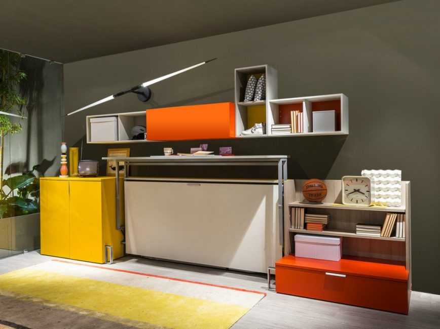 Сложная многофункциональная конструкция, которая имеет дополнительное оснащение ящичками и полками, может со временем перестраиваться, например, в письменный стол и тумбочку. Если длина кровати позволяет, то она может использоваться даже школьником.