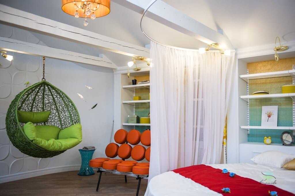 в потолок монтируют крючок и подвешивают гамак или качель. Источник фото: yandex.ru
