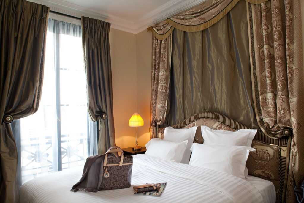 Это очень плотная ткань. Она не пропускает шум с улицы и открытые солнечные лучи. К тому же бархат не выцветает. Материал массивный и объемный, поэтому маленьким спальням он не совсем подходит. Для того, чтобы несколько разрядить пространство, вместе с занавесками из велюра вешают прозрачный тюль.