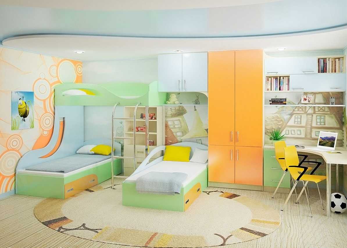 Двухъярусная кровать для троих детей разного пола: оформление детской комнаты