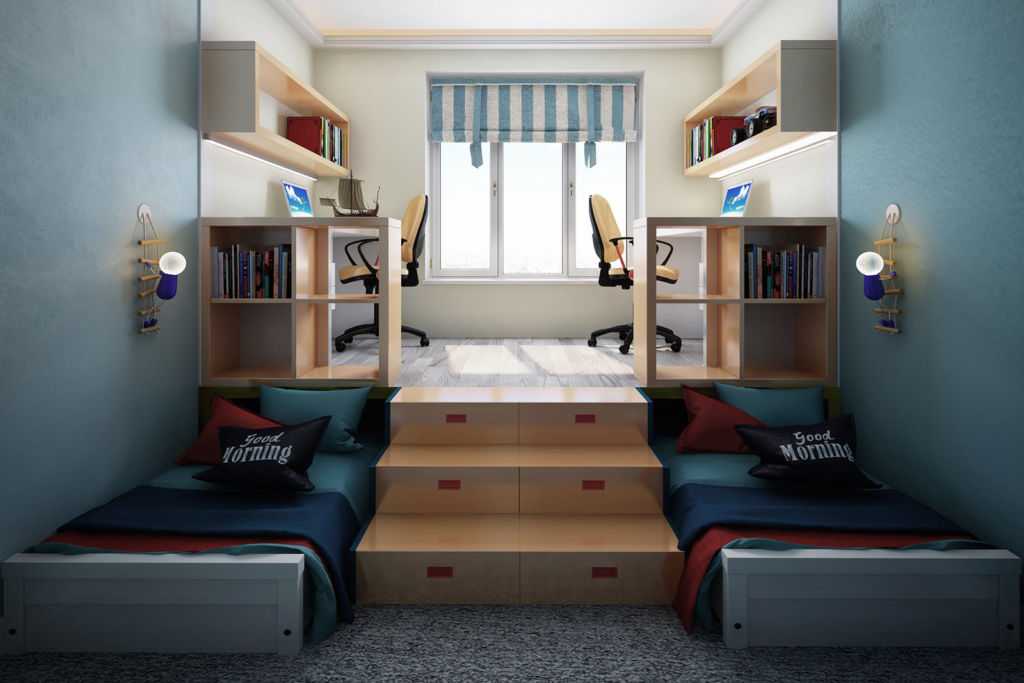 Если в семье 2 ребенка, то для обоих детей должно быть оборудовано индивидуальное место, приятный личный уголок. Это касается шкафчиков и полочек, где будет размещено белье, одежда, личные принадлежности.