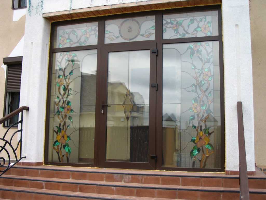 В некоторые конструкции производители вставляют красивые витражные вставки из цветного стекла, которые обладают приятным оптическим эффектом. Площадь остекления влияет на конечную стоимость продукции, но модели получаются оригинальными и необычными. Завершенный вид изделиям придает декоративная фурнитура.