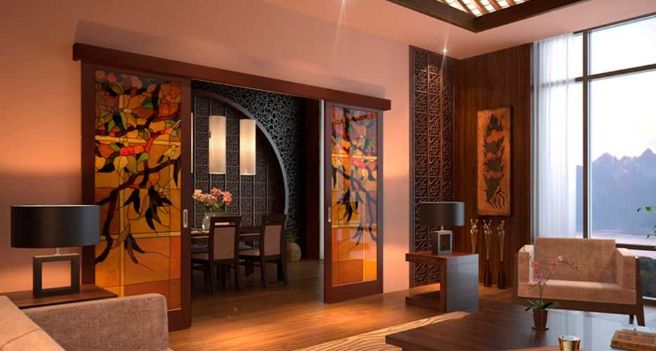 И в заключение темы про сдвижные межкомнатные двери добавлю несколько слов по поводу материала, из которого их изготавливают. В принципе, он может быть любым – такие двери делают как из МДФ, так и из натурального дерева. Существуют даже стеклянные сдвижные двери, которые позволяют зрительно увеличить объем помещений