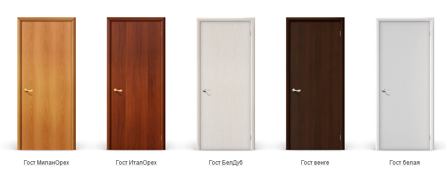 - Широким ассортиментом материалов, используемых для отделки лицевых поверхностей створок и наличников.