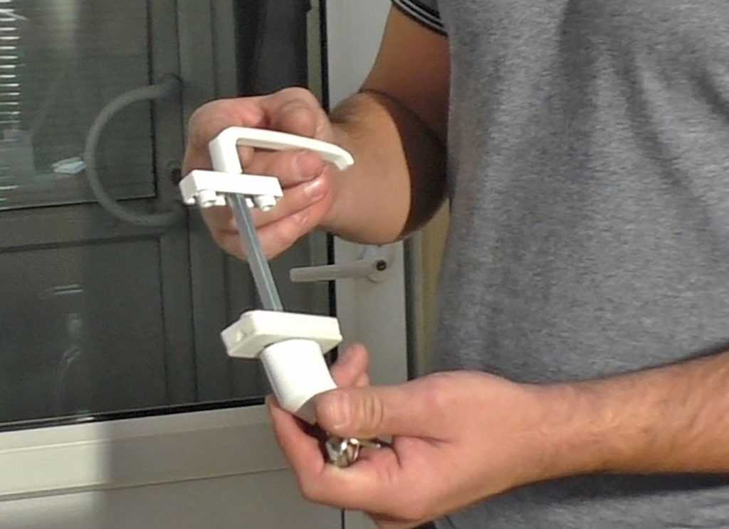 - После того, как вы открутили крепежные части – снимите рукоятки. Если на данном замке присутствует резьба, одну ручку удерживайте в неподвижном состоянии, а вторую поворачивайте в противоположную сторону.