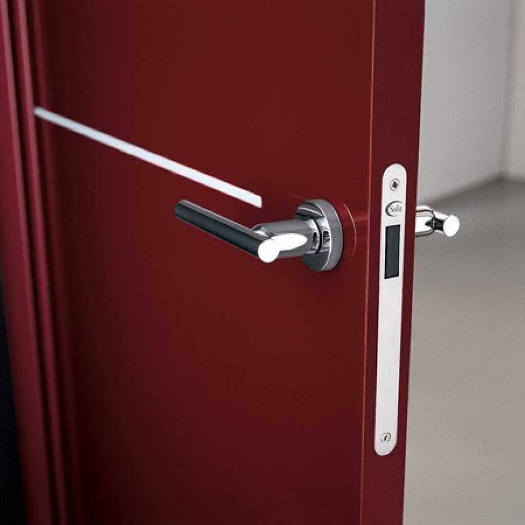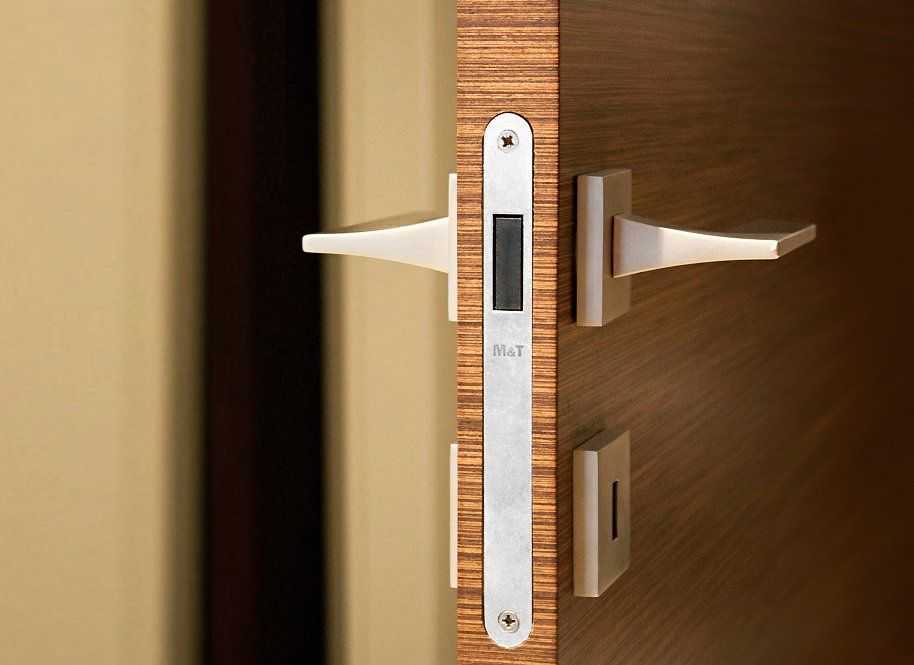 Ригель конструкции с магнитом полностью входит в полотно двери, поэтому в открытом положении нет выступающих частей, за которые можно зацепиться. Установка такой ручки имеет такой же алгоритм, что и для обычного механического образца. При этом не требуется особых инструментов. Даже в случае оседания двери, такая ручка с замком продолжит функционировать без перебоев, что не всегда возможно с механическим изделием, т. к. язычок перестает попадать в ответную планку.